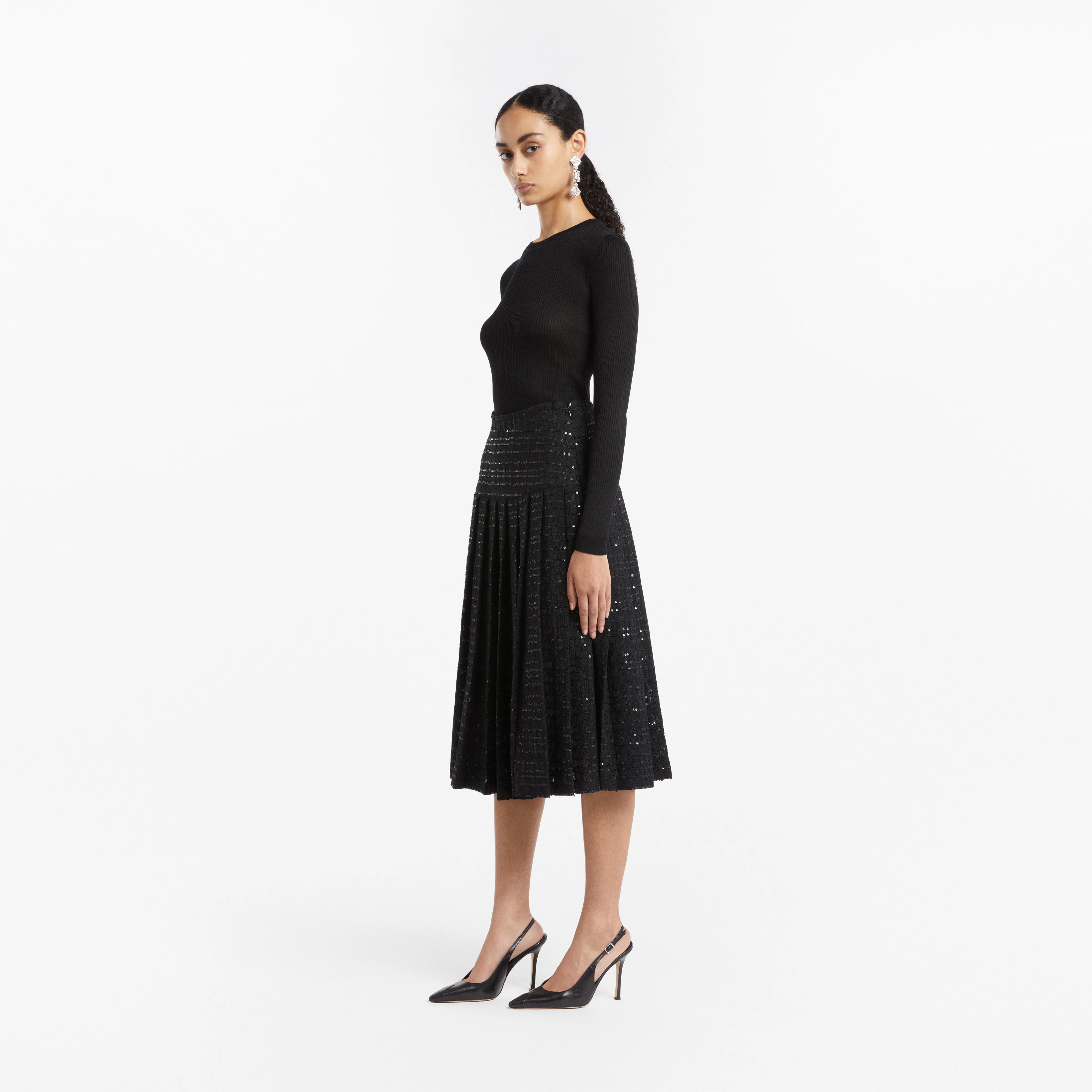 Silk ribbed knit long sleeve top